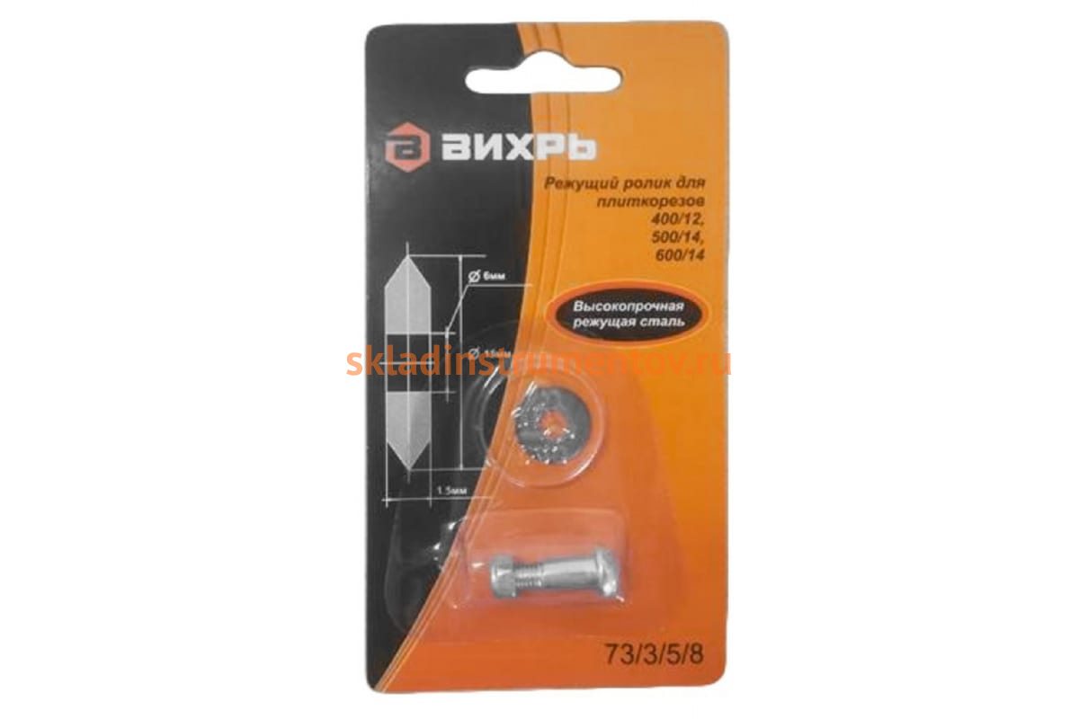 Ролик является сменным элементом плиткорезов Вихрь. Подходит для плиткорезов 400/12, 500/14, 600/14. Применяется при резке керамической кафельной плитки. Твёрдость HRA(90-94) 93, подшипник есть.