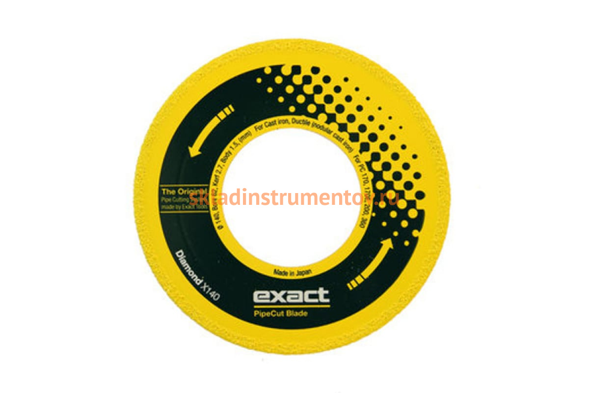Диск DIAMOND Exact 7010492 применяется для резки чугунных и стекловолоконных труб с помощью электротруборезов Exact моделей 170, 170E, 220E, 360. Диск оснащен режущей кромкой из алмазной крошки и имеет высокую прочность.
