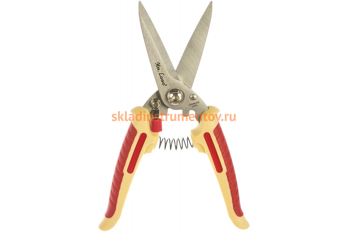 Универсальные ножницы из нержавеющей стали Mr. Logo 2600 подойдут для резки травы и тонких веток. Ими можно подрезать кустарники и деревья.