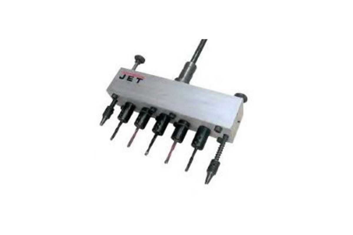 Голова сверлильная однорядная JET 10003351 применяется для выбора пазов в филенке при работе на долбежных станках. Расстояние между шпинделями Ø4х32 мм, включая твердосплавный инструмент 5хØ5 мм. Голова состоит из основы, в которой находится распределительный механизм, обеспечивающий вращение всех пяти шпинделей, подсоединенных к этой основе. Расстояние между шпинделями 32 мм. Также в наличии имеется 5 твердосплавных сверл диаметром 5 мм. Возможна быстрая и удобная регулировка глубины сверления, благодаря двум стопорным штифтам.