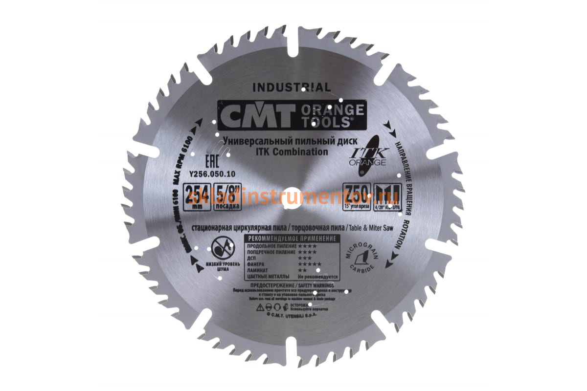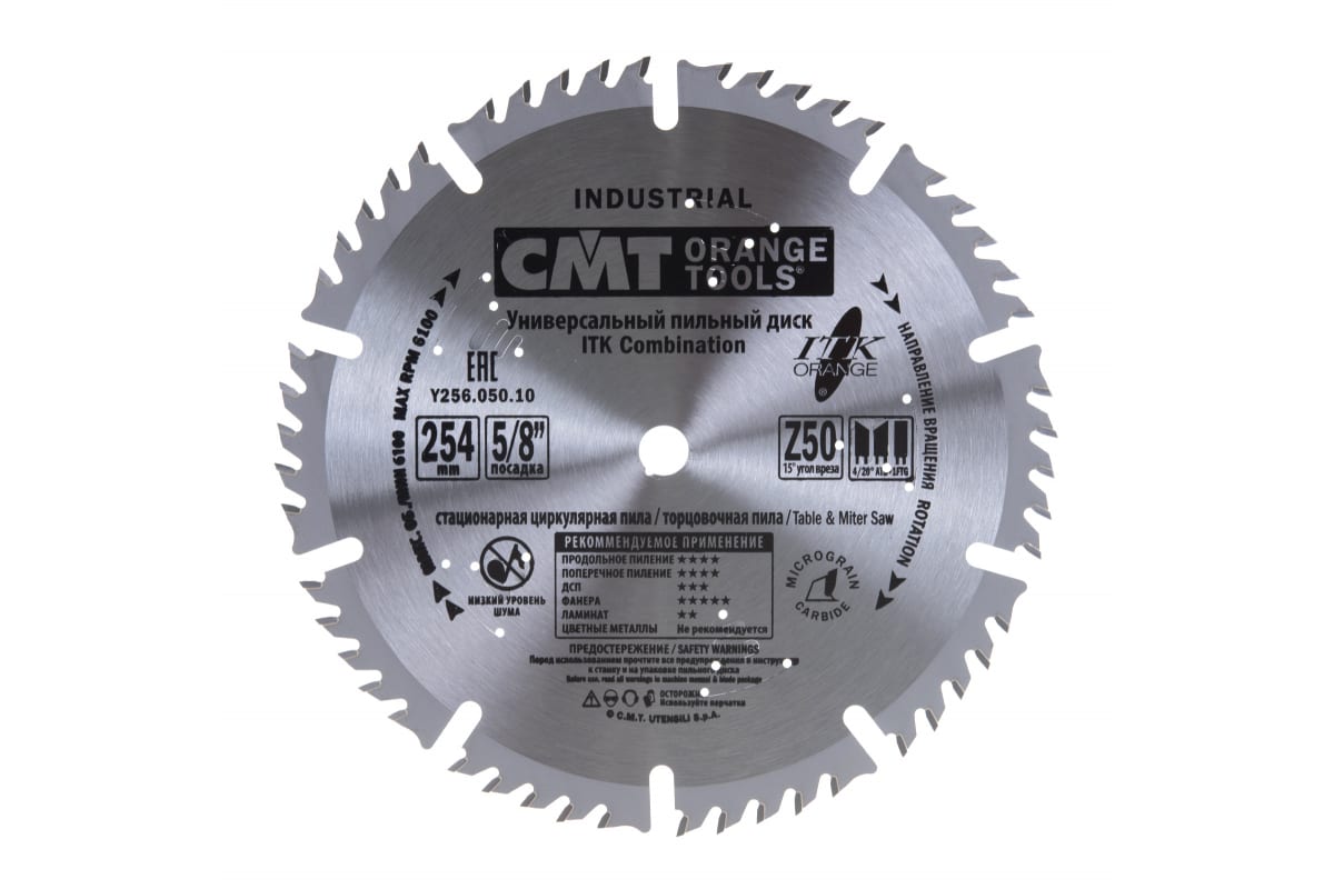 Диск пильный 254х2,5/1,8х15,87 Z=50 1FTG+4/20°ATB CMT Y256.050.10 используется для тонкого поперечного или продольного реза различных пород дерева и фанеры. Диск подходит для профессионального использования.