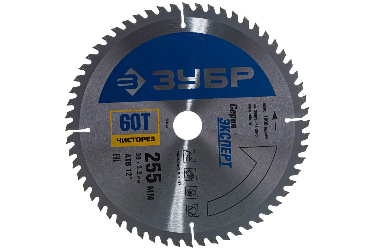 —Диск пильный по дереву "Чистый рез" 255x30 мм, 60Т Зубр 36905-255-30-60