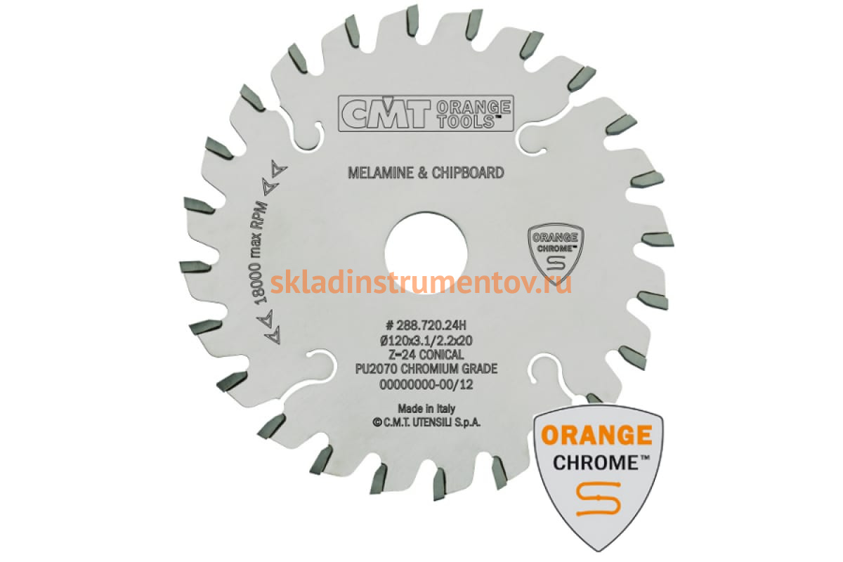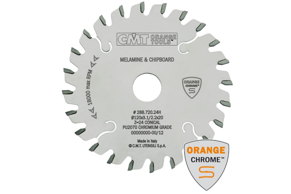 Диск подрезной по дереву (120х20х3,1-4,0/2,2 мм; Z=24) CMT 288.720.24H используется совместно с горизонтальными или вертикальными форматно-раскроечными станками для работ с ламинированными панелями, ДСП, ЛДСП, МДФ.