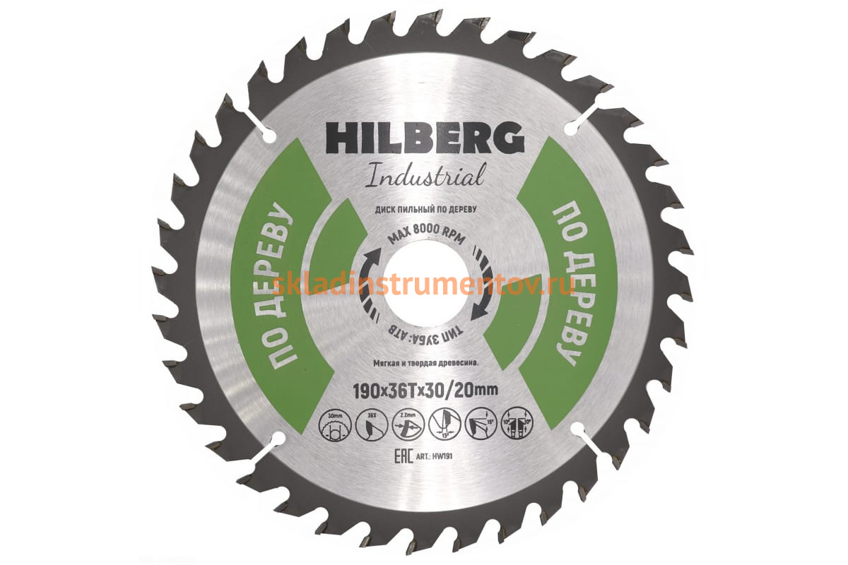 Диск пильный Industrial Дерево (190x30/20 мм; 36Т) Hilberg HW191