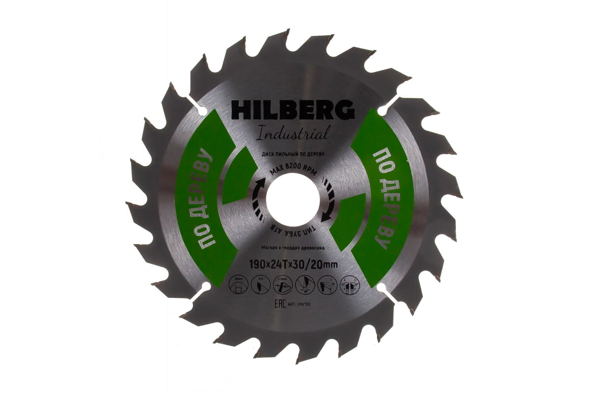 Диск пильный Hilberg Industrial Дерево (190x30/20 мм; 24Т) HW190