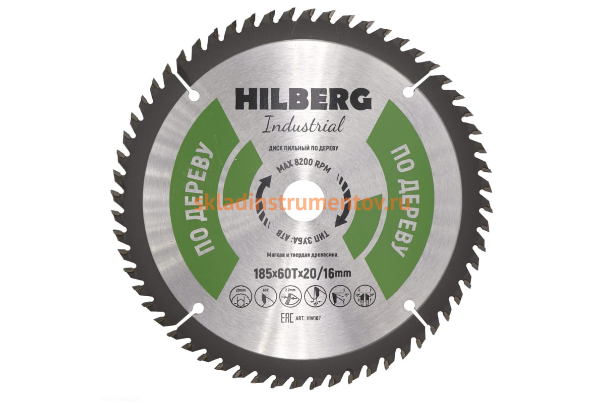 Диск пильный Hilberg Industrial Дерево (185x20/16 мм; 60Т) HW187