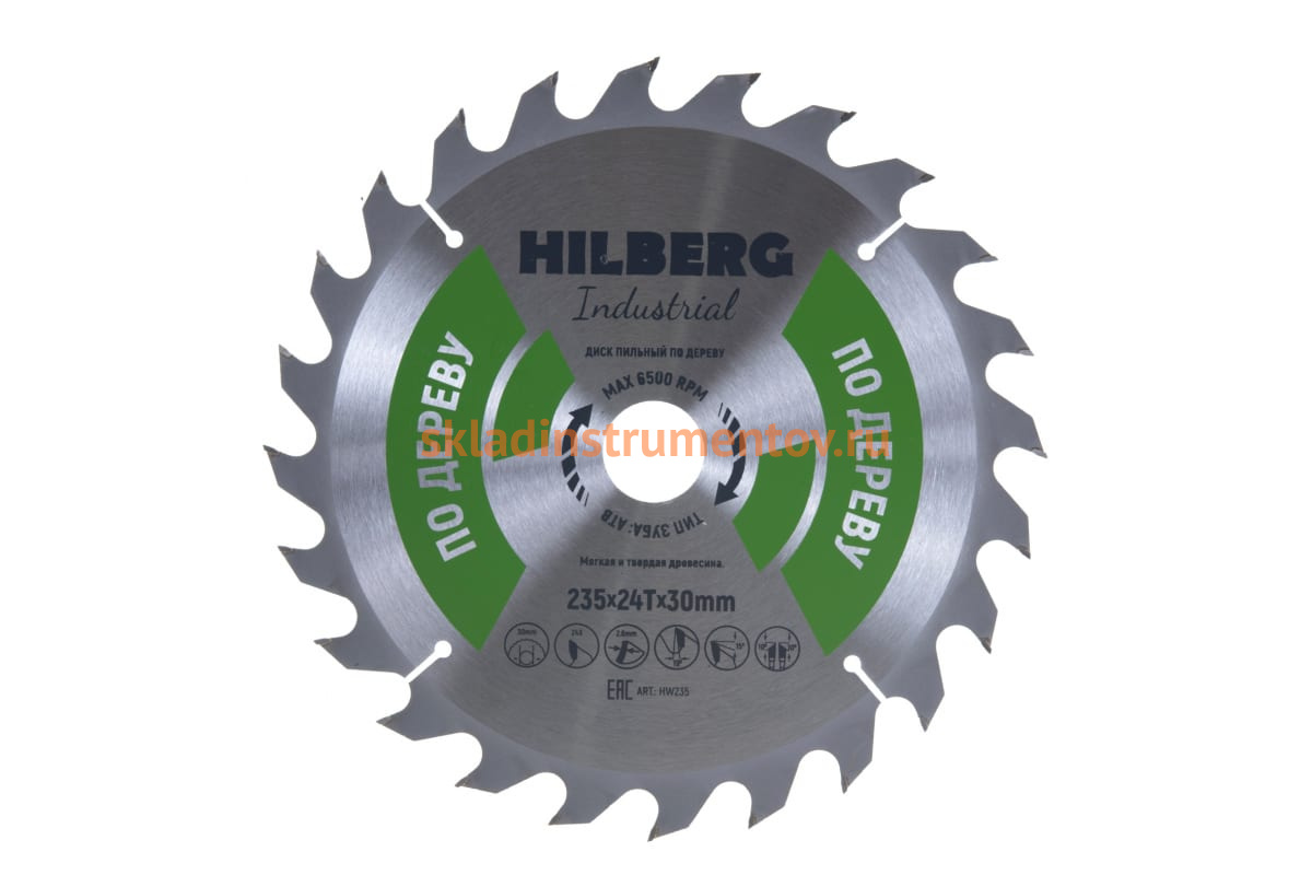 Диск пильный Hilberg Industrial Дерево (235x30 мм; 24Т) HW235