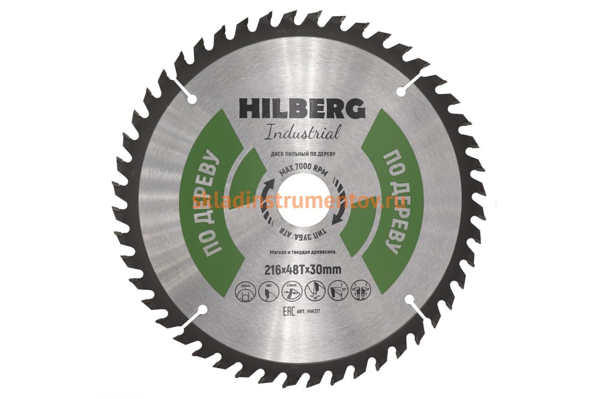 Диск пильный Hilberg Industrial Дерево (216x30 мм; 48Т) HW217