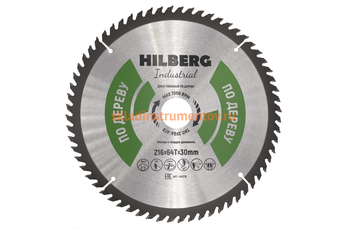 Диск пильный Hilberg Industrial Дерево (216x30 мм; 64Т) HW218
