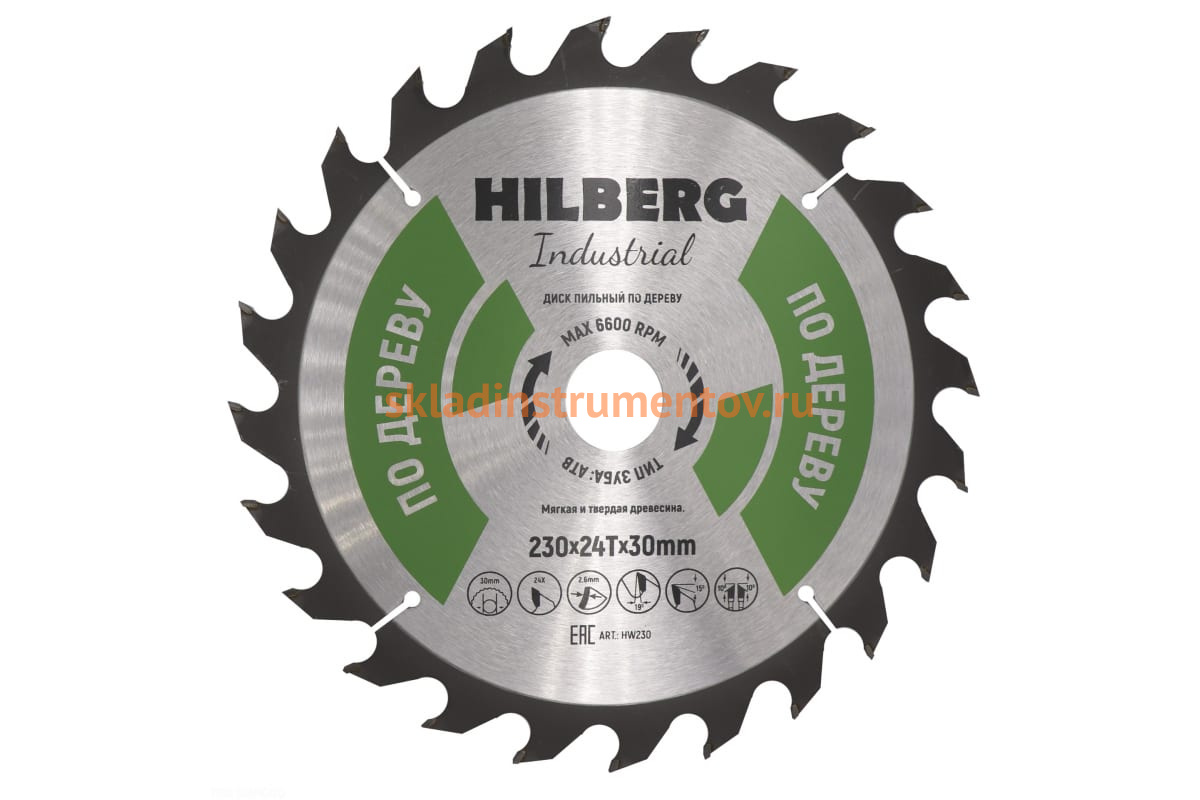 Диск пильный Hilberg Industrial Дерево (230x30 мм; 24Т) HW230