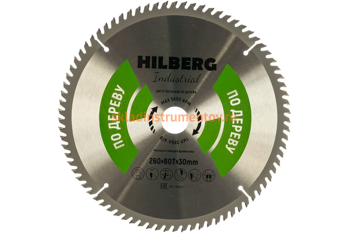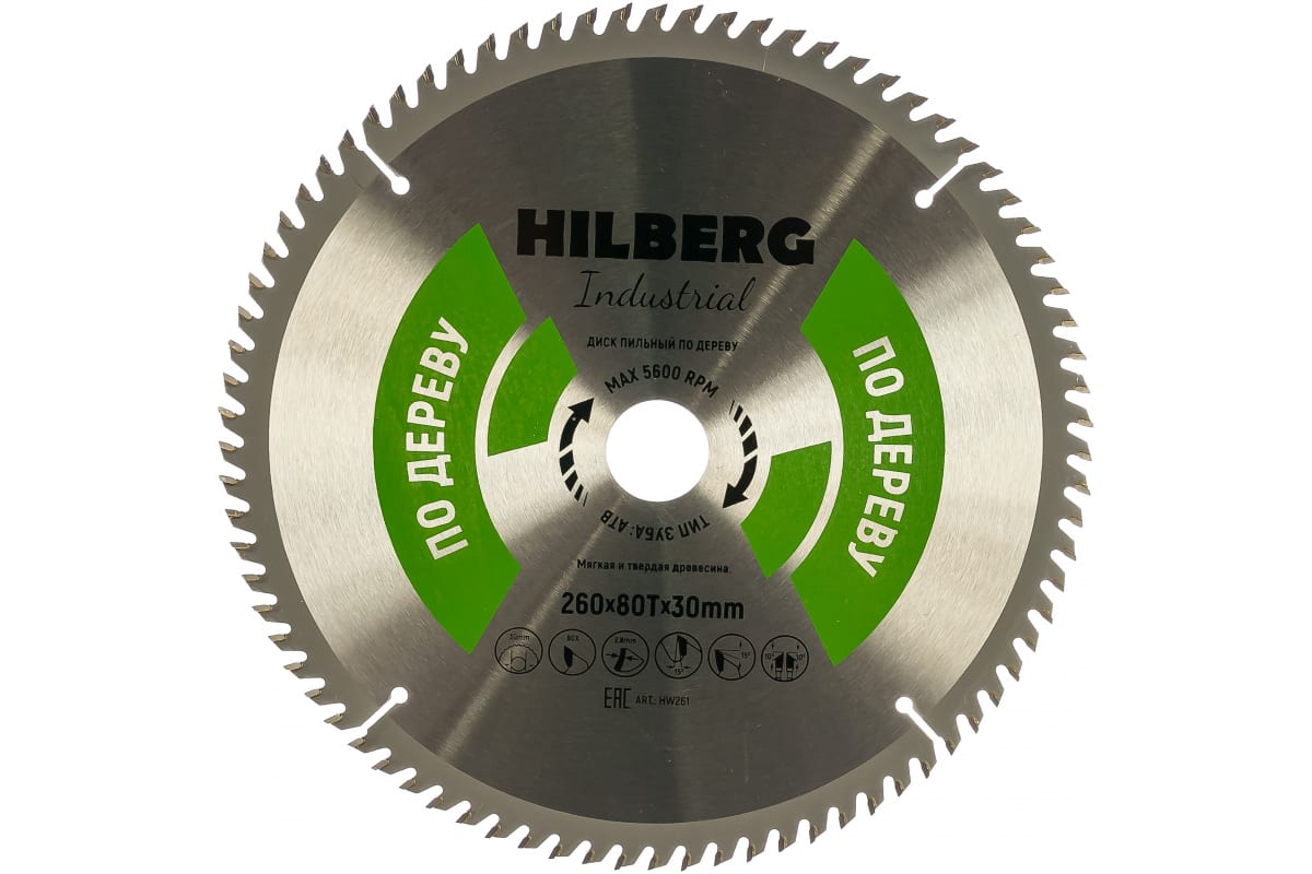 Диск пильный Hilberg Industrial Дерево (260x30 мм; 80Т) HW261