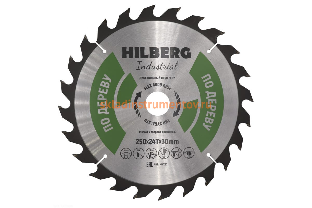 Диск пильный Hilberg Industrial Дерево (250x30 мм; 24Т) HW250
