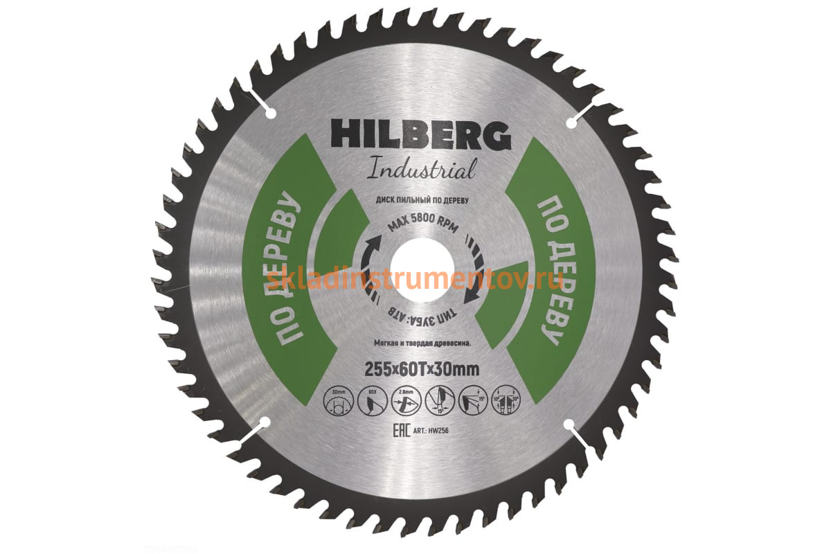 Диск пильный Hilberg Industrial Дерево (255x30 мм; 60Т) HW256