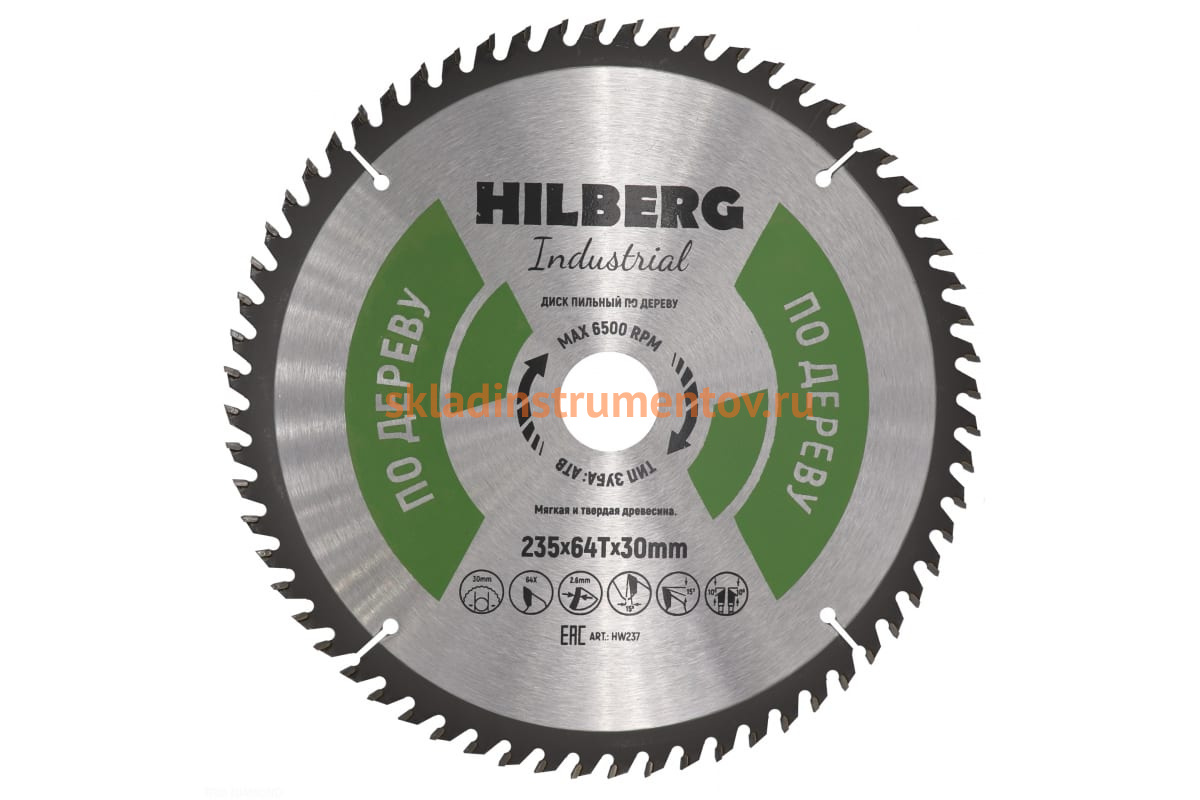 Диск пильный Hilberg Industrial Дерево (235x30 мм; 64Т) HW237