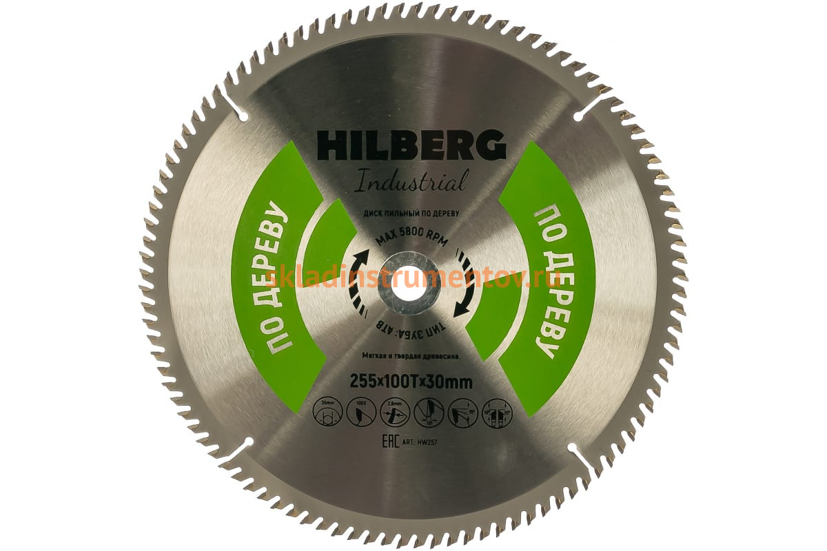 Диск пильный Hilberg Industrial Дерево (255x30 мм; 100Т) HW257