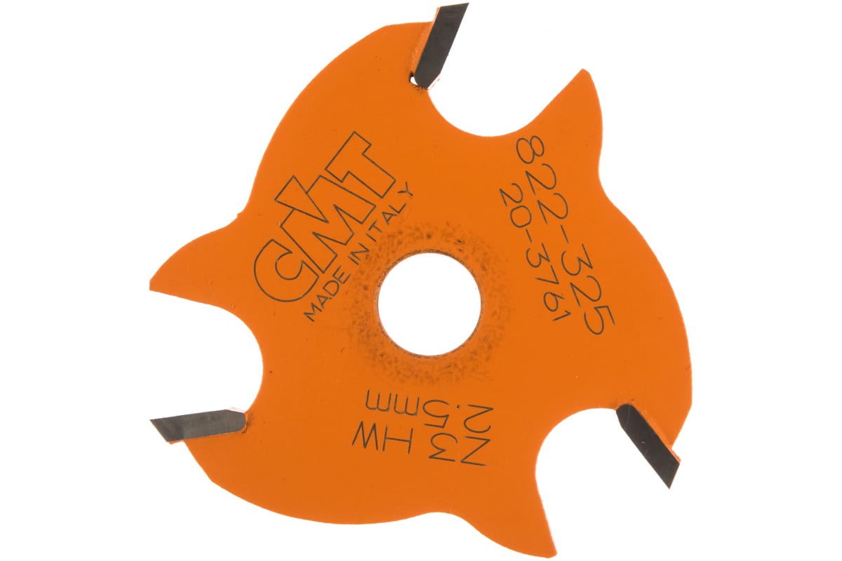 Дисковая пазовая фреза СМТ 822.325.11 применяется для работы по мягкой и твердой древесине. Оснастка имеет три режущие напаянные твердосплавные пластины и защитное покрытие оранжевого цвета PTFE. Державка для фрезы приобретается отдельно (серия 724, 824, 924).