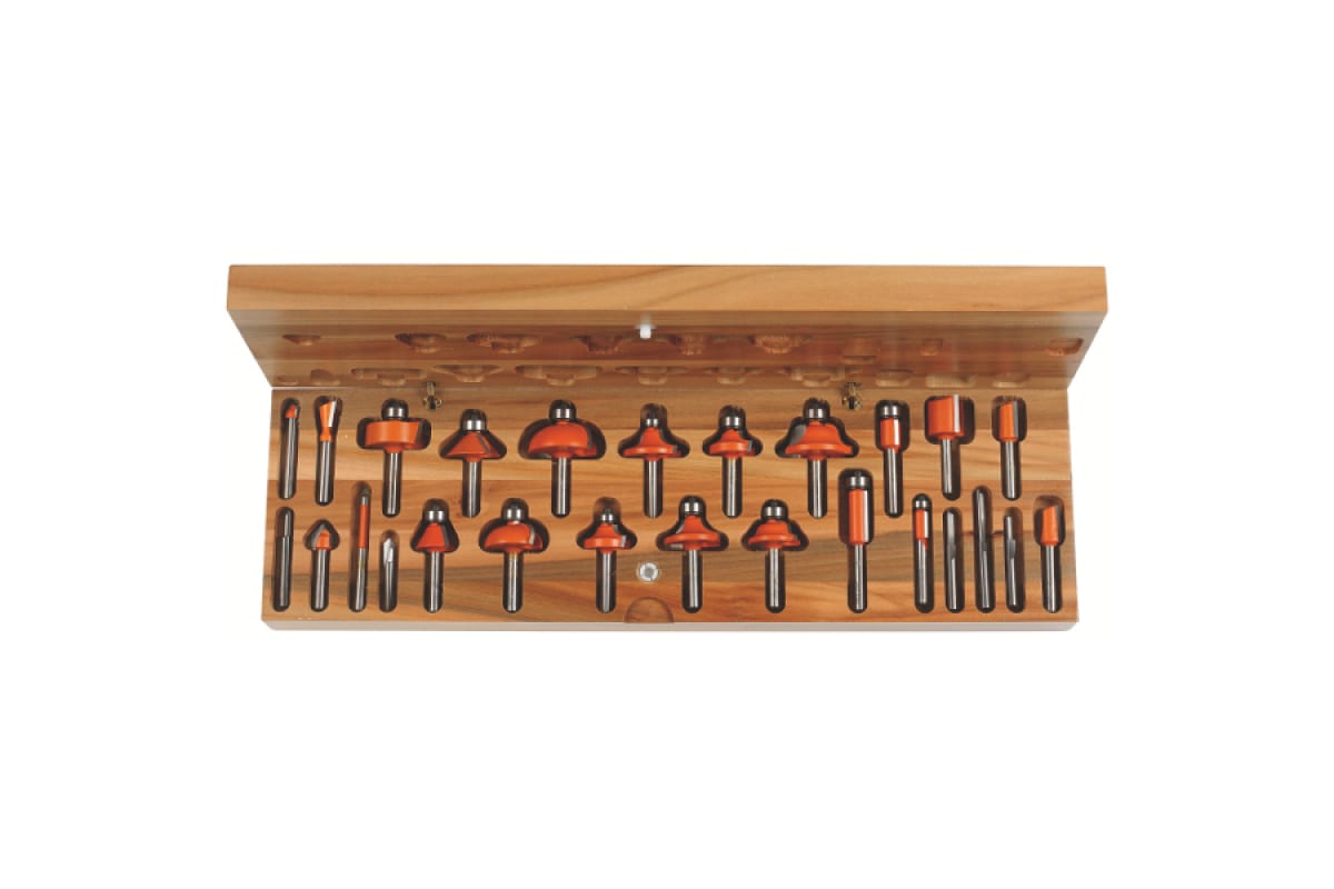 Комплект фрез концевых (26 шт; хвостовик 8 мм; RH) CMT 900.003.00 включает в себя пазовые, обгонные, галтельные, калевочные, фрезы ласточкин хвост и другие. Предназначен для работы по твердой и мягкой древесине. Используется совместно с фрезерными машинами и фрезерными станками.