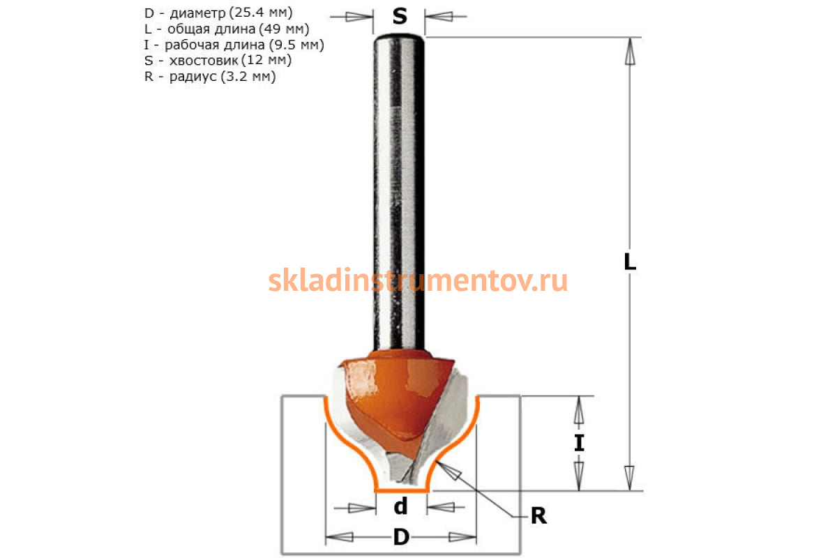 Фреза гравировальная фигурная (25.4x9.5 мм; R 3.2 мм; хвостовик 12 мм) CMT 965.504.11 используется совместно с фрезерными машинами и фрезерными станками. Применяется для гравировки и декорирования дверей или мебельных фасадов. Фреза изготовлена из высококачественных материалов и снабжена твердосплавными напайками. Радиус - 3.2 мм. Общая длина - 49 мм.