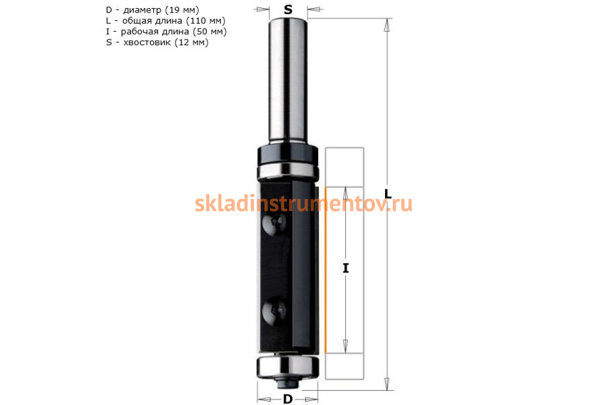 Фреза обгонная со сменными ножами (19x50 мм; хвостовик 12 мм; RH) CMT 657.993.11B используется совместно с фрезерными машинами и фрезерными станками для обгонки по шаблону. Изготовлена из высококачественных материалов и оснащена двумя сменными ножами из твердого сплава, каждый из которых имеет две заточенные грани. При затуплении одной из граней нож переворачивается на 180 градусов для работы следующей. Фреза обеспечивает высокое качество обрабатываемой кромки и снабжена двумя подшипниками - верхним и нижним. Общая длина оснастки - 110 мм.