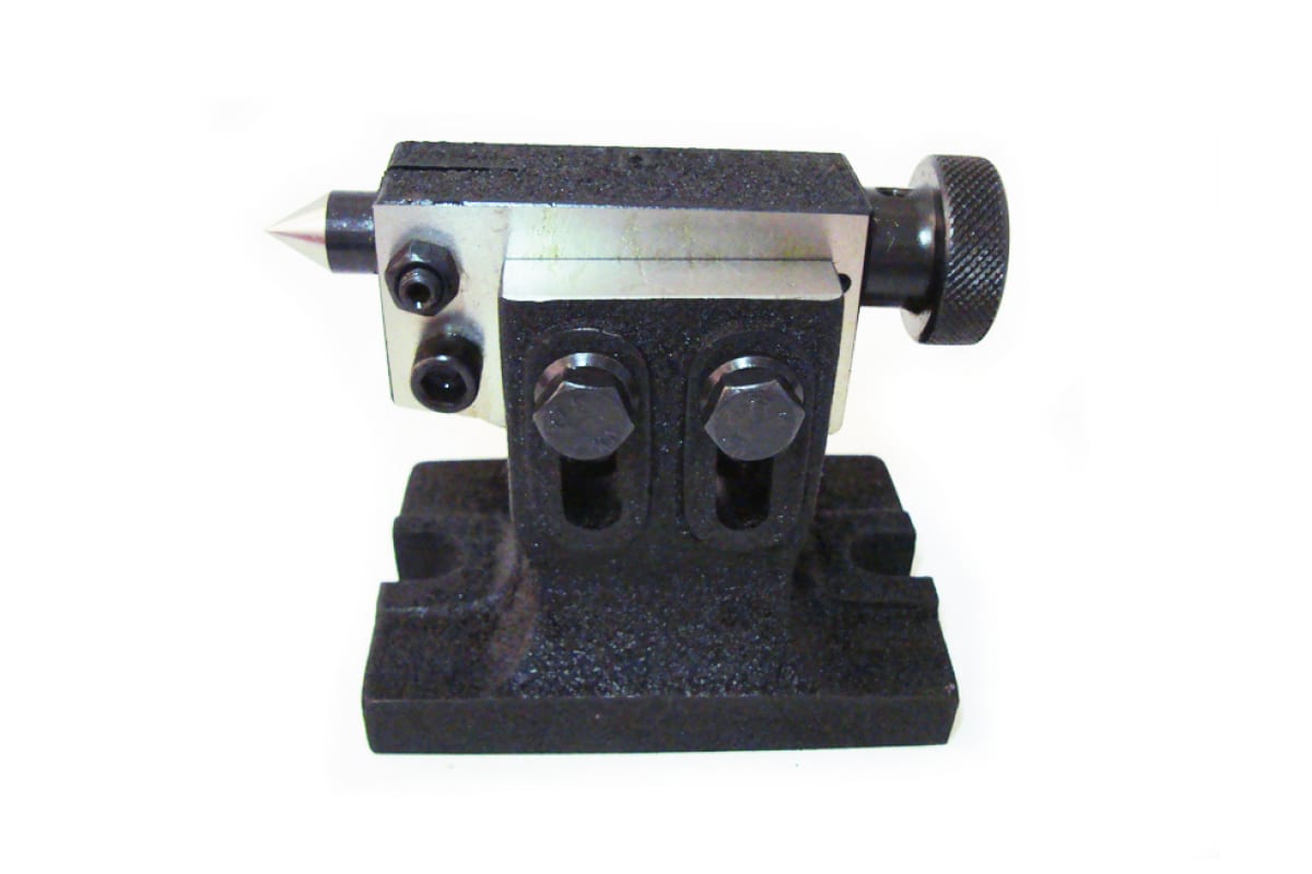 Задняя бабка к поворотным столам 100мм, HV4, HV6 VISPROM 0022. Поджатие длинных и габаритных заготовок задней бабкой необходимо для исключения биения и вибраций при обработке, что повышает точность работы. Зажим детали регулируется вращением рукоятки.