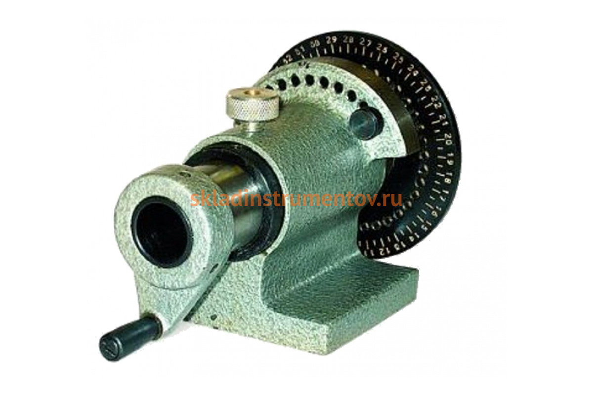 Делительная головка DH-1 предназначена для деления материала при сверлении, фрезеровании или шлифовании. Используется для поворота заготовки на определенный угол. Черновое деление производится на делителе по 10 градусов, а точное по 1 градусу с точностью 4 минуты. Позволяет производить деление на 2, 3, 4, 6, 9, 12, 18 и 36 частей.