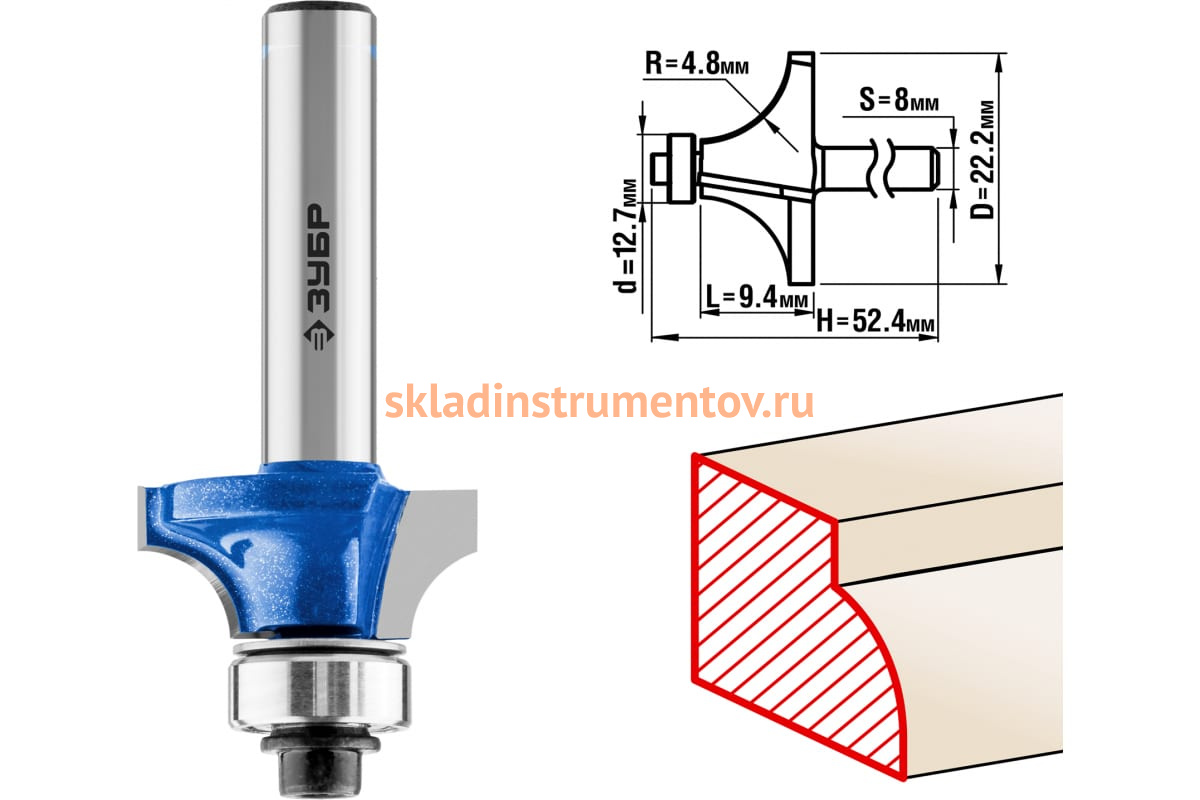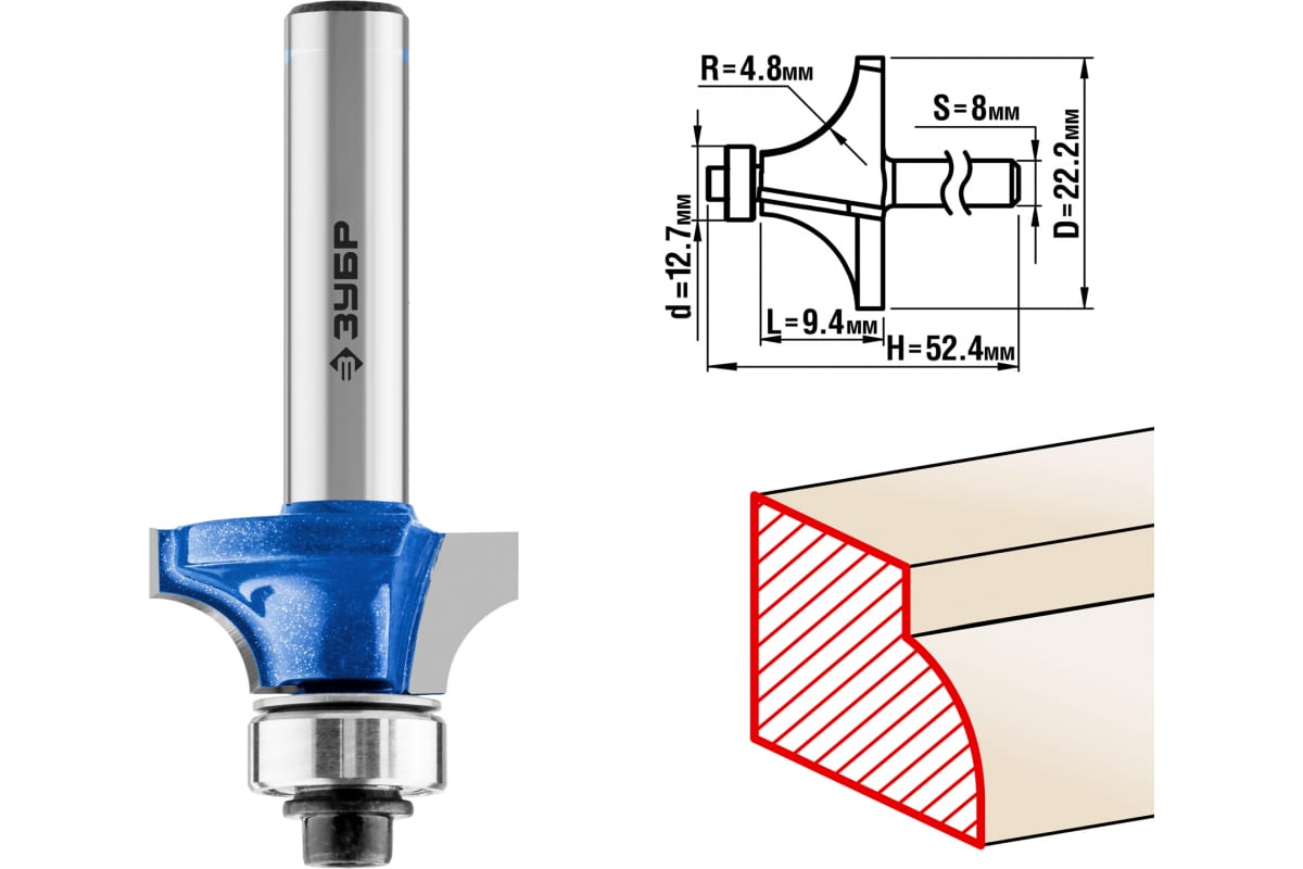 Фреза кромочная калевочная №1 ПРОФЕССИОНАЛ Зубр 28701-22.2 предназначена для фрезерных станков и ручных фрезеров. Применяется при обработке древесины. Фреза подходит для скругления кромок. Упорный подшипник 9.5 мм позволяет обрабатывать криволинейные кромки без дополнительных приспособлений.