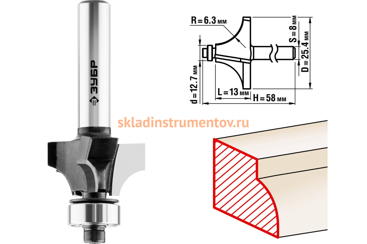 Фреза кромочная калевочная №1 ПРОФЕССИОНАЛ Зубр 28784-25.4 предназначена для фрезерных станков и ручных фрезеров. Применяется для скругления кромок при обработке столешниц, полок, шкафов и прочих работ с разнообразными видами древесины.