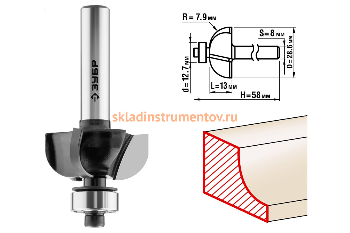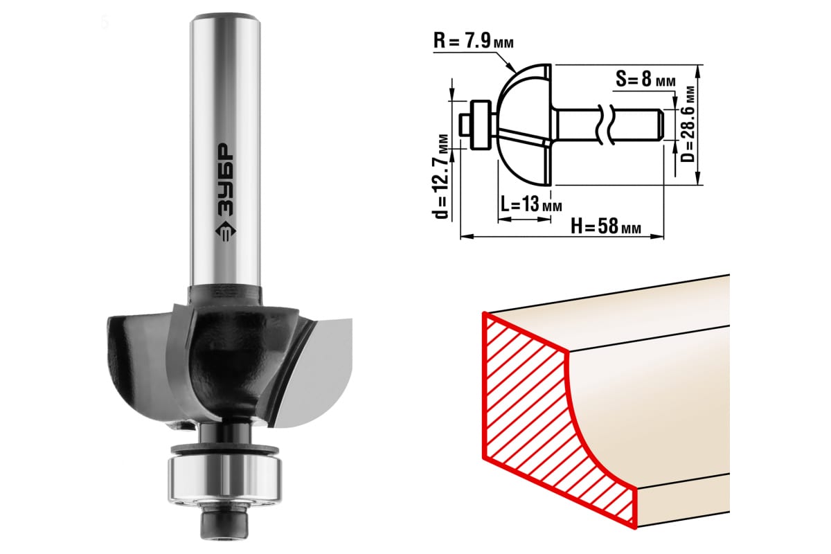 Фреза кромочная калевочная №2 ПРОФЕССИОНАЛ Зубр 28785-28.6 предназначена для фрезерных станков и ручных фрезеров. Применяется для скругления кромок при обработке столешниц, полок, шкафов и прочих работ с разнообразными видами древесины.