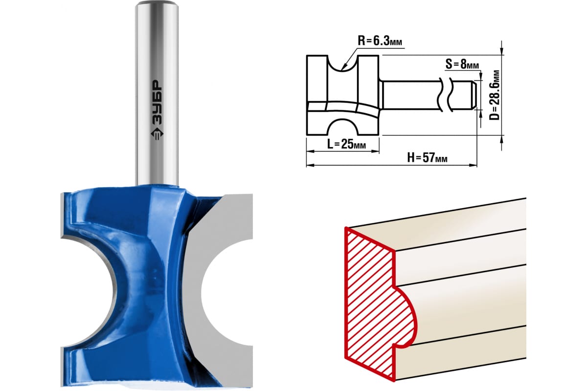 Фреза полустержневая ПРОФЕССИОНАЛ Зубр 28723-28.6 предназначена для фрезерных станков и ручных фрезеров. Применяется при обработке мебели, столярных изделий, предметов интерьера, а также реставрационных работах и внутренней отделке. Оснастка подходит для обработки кромок, торцев, получения декоративного профиля при работе с различными видами древесины.