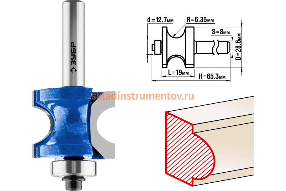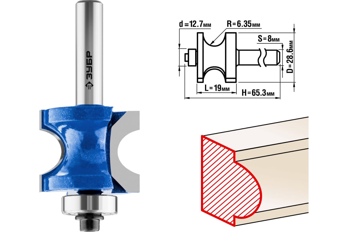 Фреза полустержневая с подшипником ПРОФЕССИОНАЛ Зубр 28722-28.6 предназначена для фрезерных станков и ручных фрезеров. Применяется при обработке мебели, столярных изделий, предметов интерьера, а также реставрационных работах и внутренней отделке. Оснастка подходит для обработки кромок, торцев, получения декоративного профиля при работе с различными видами древесины.