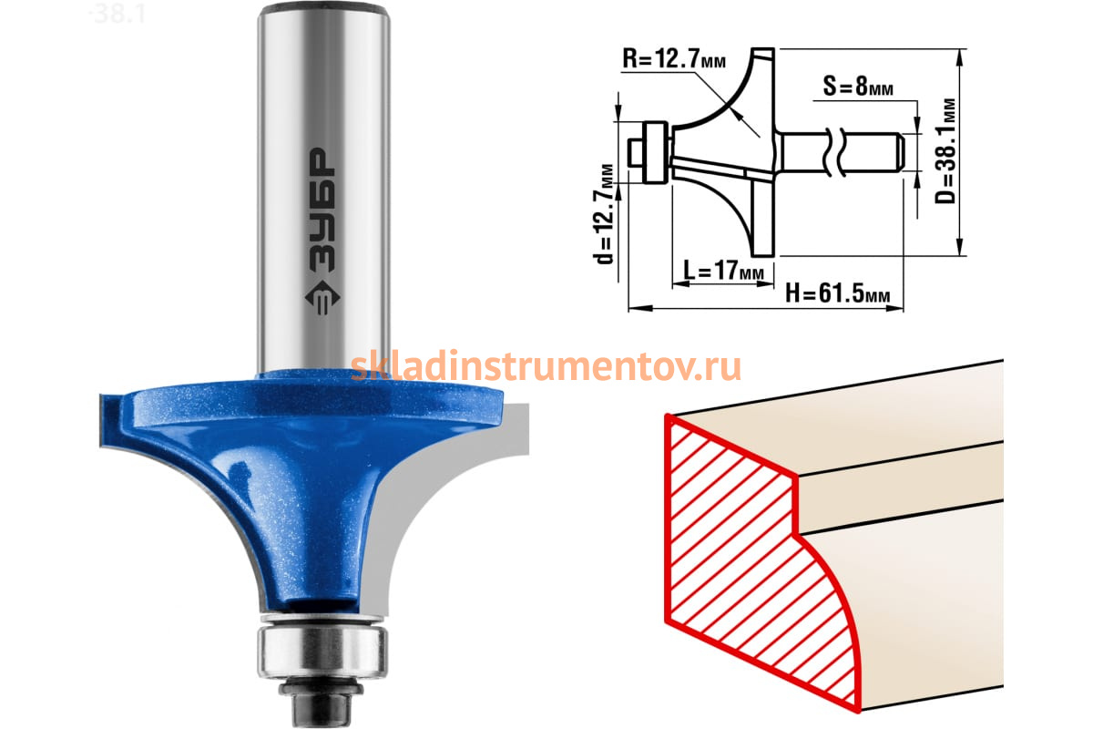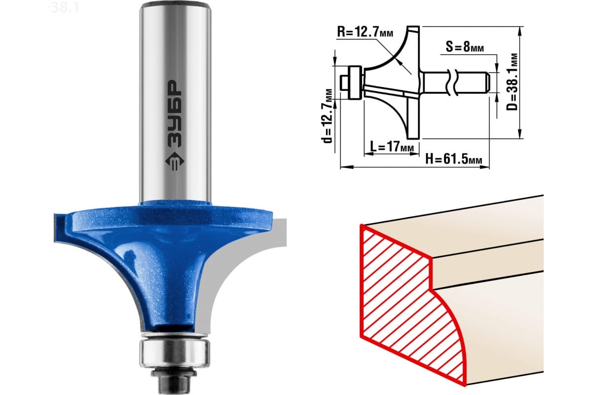 Фреза кромочная калевочная №1 ПРОФЕССИОНАЛ Зубр 28701-38.1 предназначена для ручных фрезеров и фрезерных станков. Применяется для скругления кромок при обработке столешниц, полок, шкафов и прочих работ с разнообразными видами древесины. Фреза оснащена нижним подшипником, диаметром 12.7 мм.