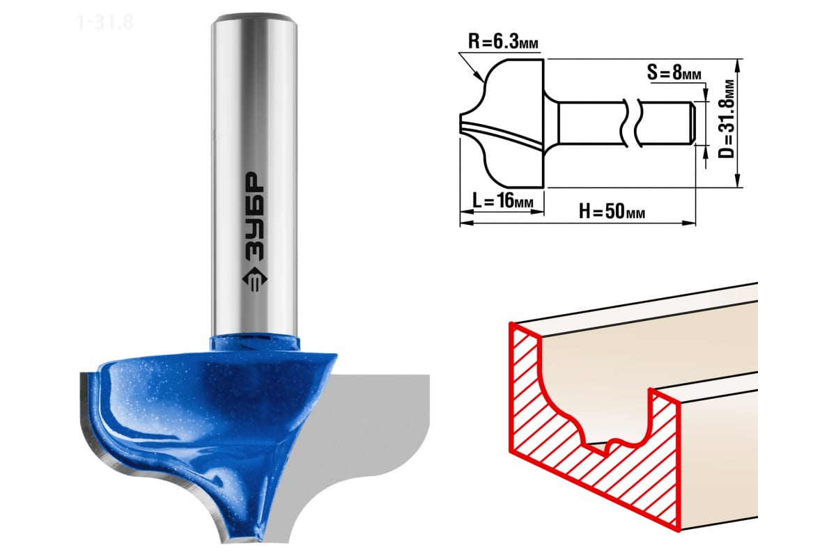Фреза пазовая фасонная №2 ПРОФЕССИОНАЛ Зубр 28741-31.8 предназначена для ручных фрезеров и фрезерных станков. Применяется для профилирования кромок, изготовления декоративных пазов и рисунков, фрезерования канавок при работе с различными видами древесины.