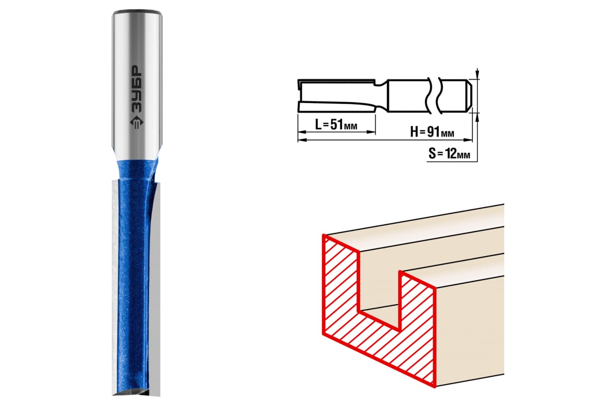 Фреза пазовая прямая с нижними подрезателями ПРОФЕССИОНАЛ Зубр 28755-12-51 предназначена для ручных фрезеров и фрезерных станков. Применяется для изготовления пазов и канавок требуемой конфигурации при работе с различными видами древесины.