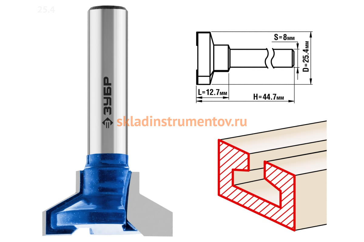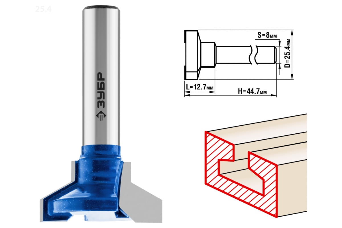 Фреза пазовая Т-образная №2 ПРОФЕССИОНАЛ Зубр 28750-25.4 предназначена для фрезерных станков и ручных фрезеров. Применяется при обработке мебели, столярных изделий, предметов интерьера, а также реставрационных работах и внутренней отделке. Оснастка подходит для выборки пазов на кромках и торцах деталей и изготовлении Т-образных соединений при работе с различными видами древесины.