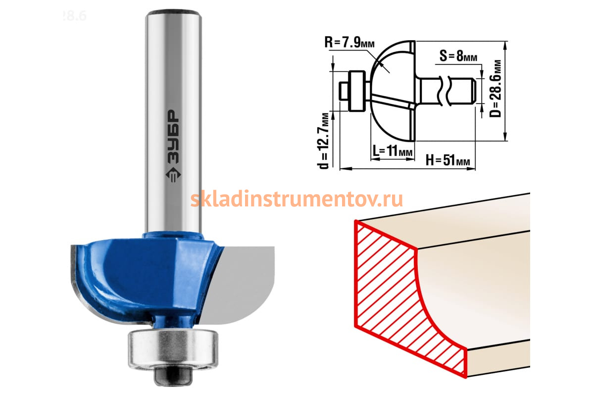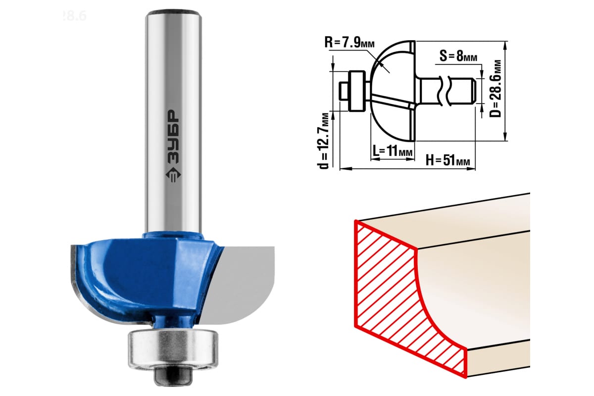 Фреза кромочная калевочная №2 ПРОФЕССИОНАЛ Зубр 28702-28.6 предназначена для фрезерных станков и ручных фрезеров. Применяется при обработке древесины. Фреза подходит для скругления кромок. Упорный подшипник 12.7 мм позволяет обрабатывать криволинейные кромки без дополнительных приспособлений.