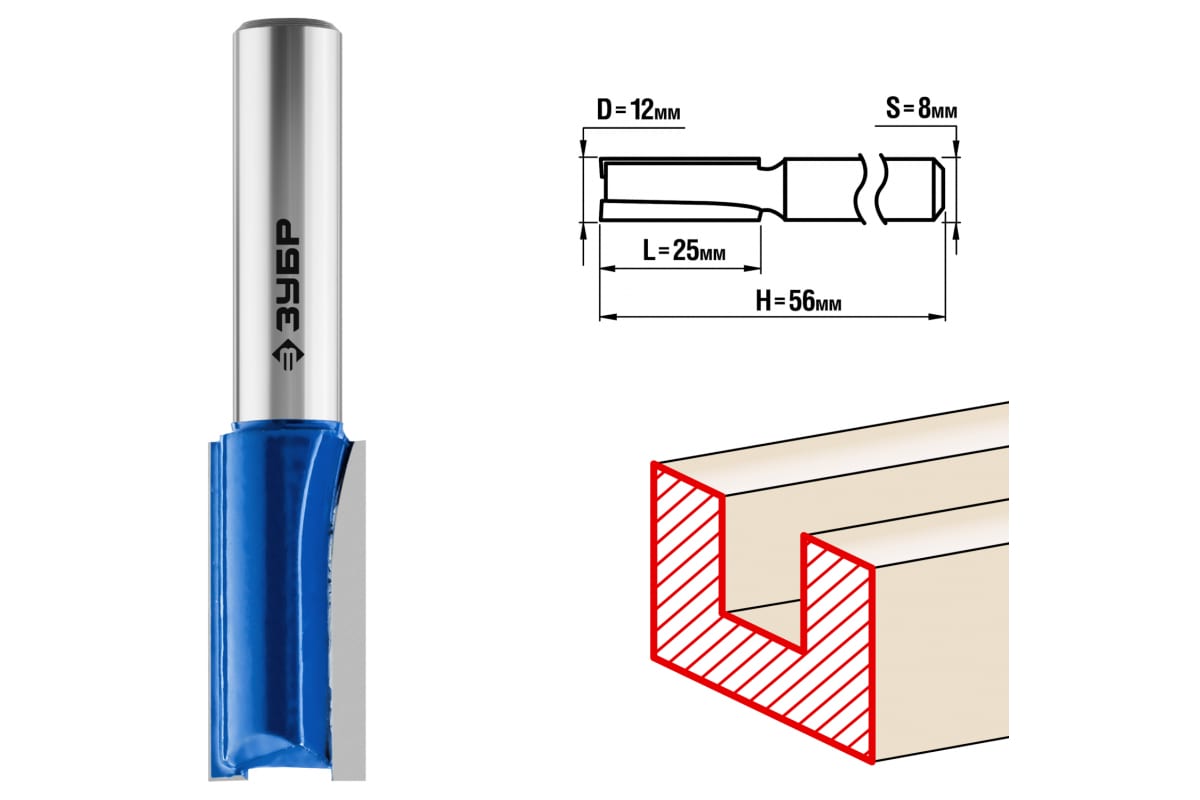 Фреза пазовая прямая ПРОФЕССИОНАЛ Зубр 28753-12-25 предназначена для фрезерных станков и ручных фрезеров. Применяется при обработке мебели, столярных изделий, предметов интерьера, а также реставрационных работах и внутренней отделке. Оснастка подходит для изготовления пазов и канавок требуемой конфигурации при работе с различными видами древесины.