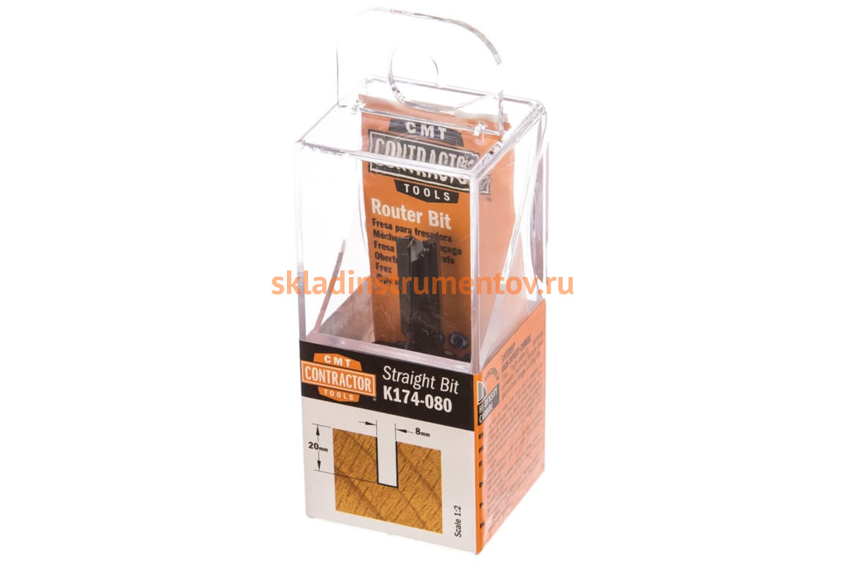 Фреза концевая пазовая Contractor CMT K174-080 предназначена для ручных фрезеров и фрезерных станков. Применяется для выборки пазов с ровными торцами. Используется по мягкой и твердой древесине, шпону, ламинату, фанере, ДСП, ЛДСП и МДФ. Режущая часть выполнена с напайными зубьями из твердого сплава. Количество зубьев – 2+1 шт.