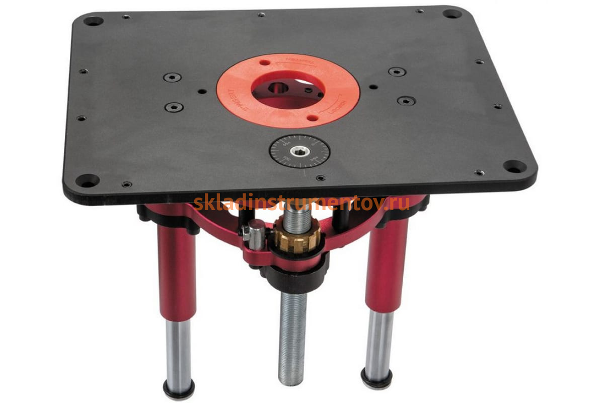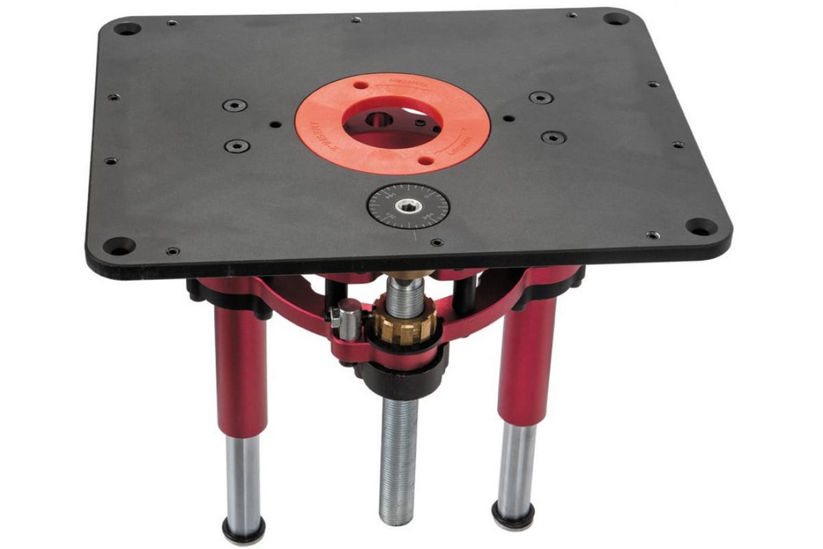 Лифт JRMLS-1 JET 10000079 предназначен для установки в стол фрезерного двигателя JRM-1 или другого подобного с цилиндрическим корпусом диаметром 98-107 мм. С верхней стороны расположено отверстие для рукоятки подъема/ опускания и шкала с угловой разметкой для контроля. Один оборот ручки перемещает мотор на 1/16 дюйма или примерно на 1.6 мм. Для монтажа устройства в поверхности стола делают вырез по размеру пластины и закрепляют с тыльной стороны монтажные кронштейны. Пластину кладут сверху и выравнивают заподлицо, вращая девять регулировочных упоров, после чего ввинчивают и затягивают крепежные винты.