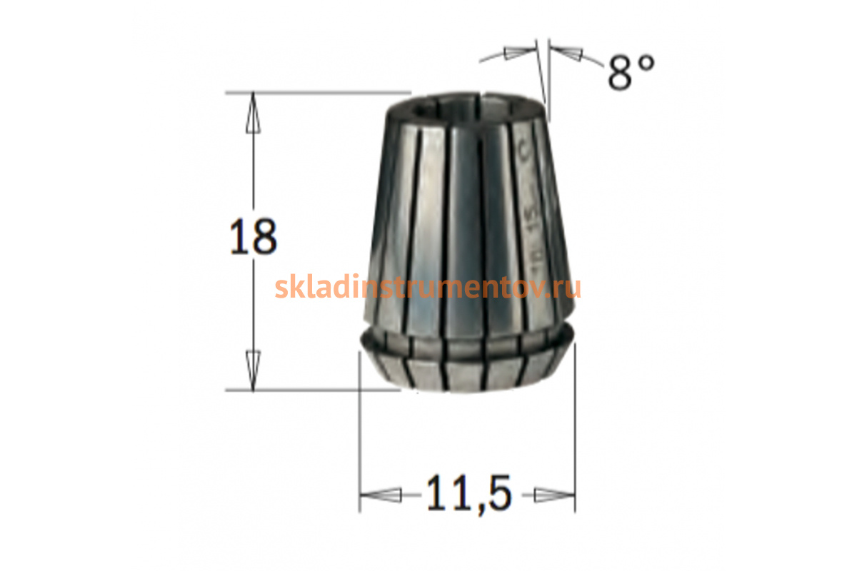 Цанга высокоточная ER11 CMT 184.020.11 устанавливается на станках в специальный патрон с помощью прижимной гайки. Применяется для жесткой фиксации рабочего инструмента или детали с цилиндрическим хвостовиком. Отличается высокими эксплуатационными свойствами и долгим сроком службы, устойчива к большим нагрузкам. Длина — 18 мм. Внешний диаметр — 11.5 мм. Внутренний диаметр — 2 мм. Угол конуса — 8º.