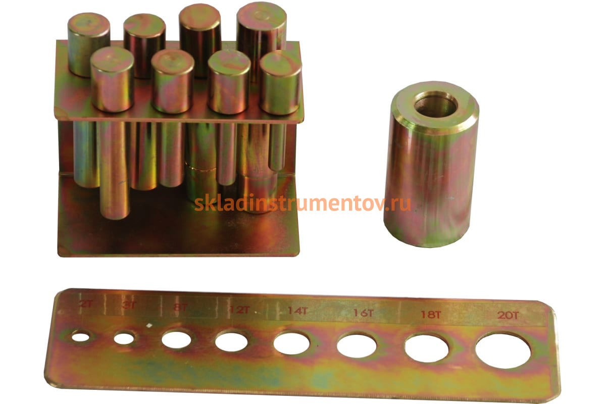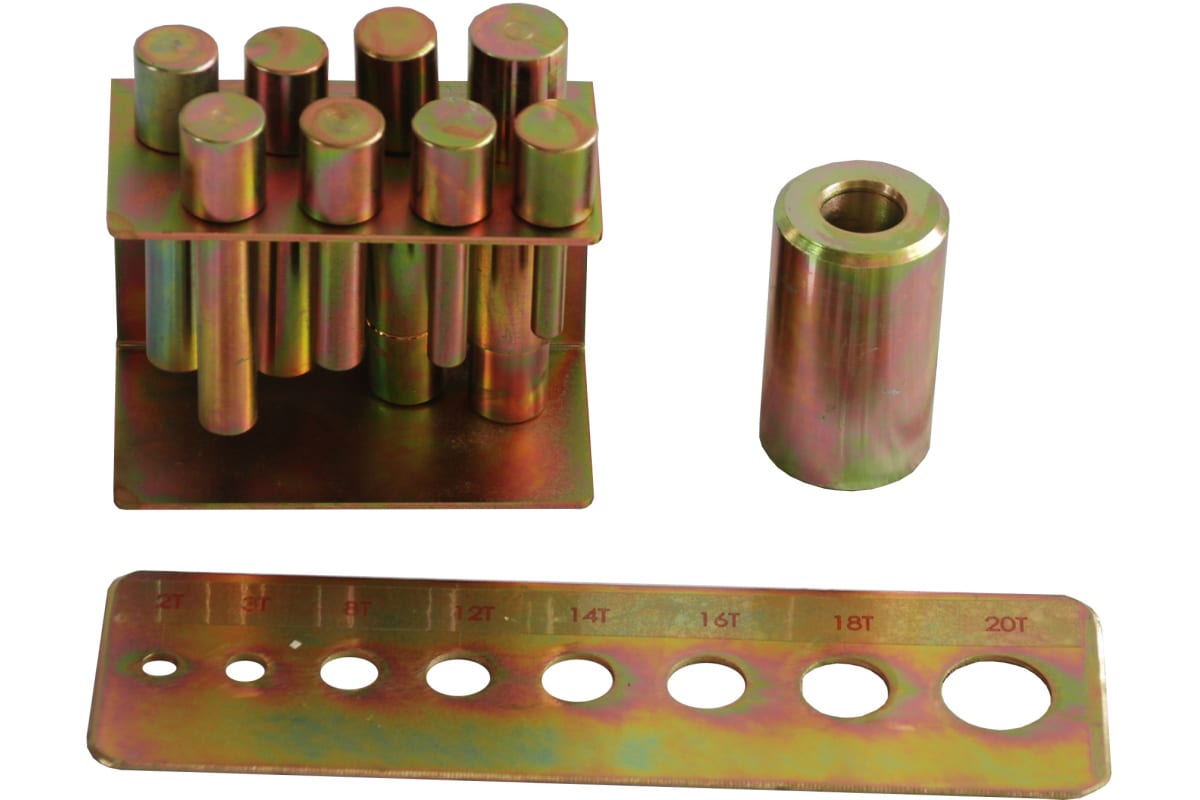 Набор пуансонов PPA AE&T и пресс формы предназначены для гидравлических прессов. В комплекте 8 пуансонов: 3/8”, 7/16”, 9/16”, 5/8”, 3/4”, 13/16”, 15/16”, 1 1/8”, рама для пуансонов, пресс форма.
