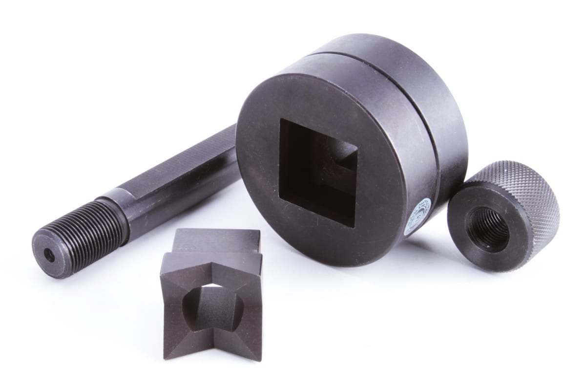 Матрица МПО 72х72 КВТ 65654 используется совместно с гидравлической системой ПГПО-60 и гидравлическим ручным прессом ПГРО-60. Предназначена для перфорирования квадратных отверстий — 72х72 мм в листовом металле толщиной до 3 мм. В комплект входит: матрица, пуансон, резьбовая шпилька, прижимная втулка.