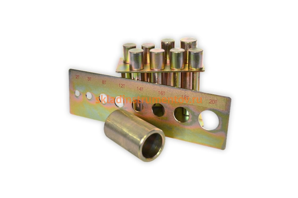 Комплект пуансонов с матрицей Trommelberg SD2030TB предназначен для пресса SD20500F-3. Комплект состоит из 8 пуансонов с держателем для гидравлического пресса Trommelberg на 20 тонн. Для определения максимальной нагрузки на пуансон используется пластина с соответствующими отверстиями. Также в комплекте поставляется адаптер для установки пуансонов на пресс.