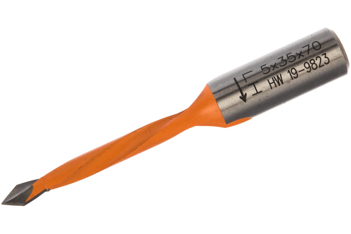 Сверло HW CMT 314.050.12 является сменным элементом для присадочного станка. Применяется для сверления сквозных отверстий в древесине. Изготовлено из сверхпрочной стали. Режущая часть покрыта оранжевым или черным напылением - P.T.F.E. Сверло имеет направляющую твердосплавную напайку и две твердосплавные режущие грани. Хвостовик – цилиндрический. Вращение – левое.