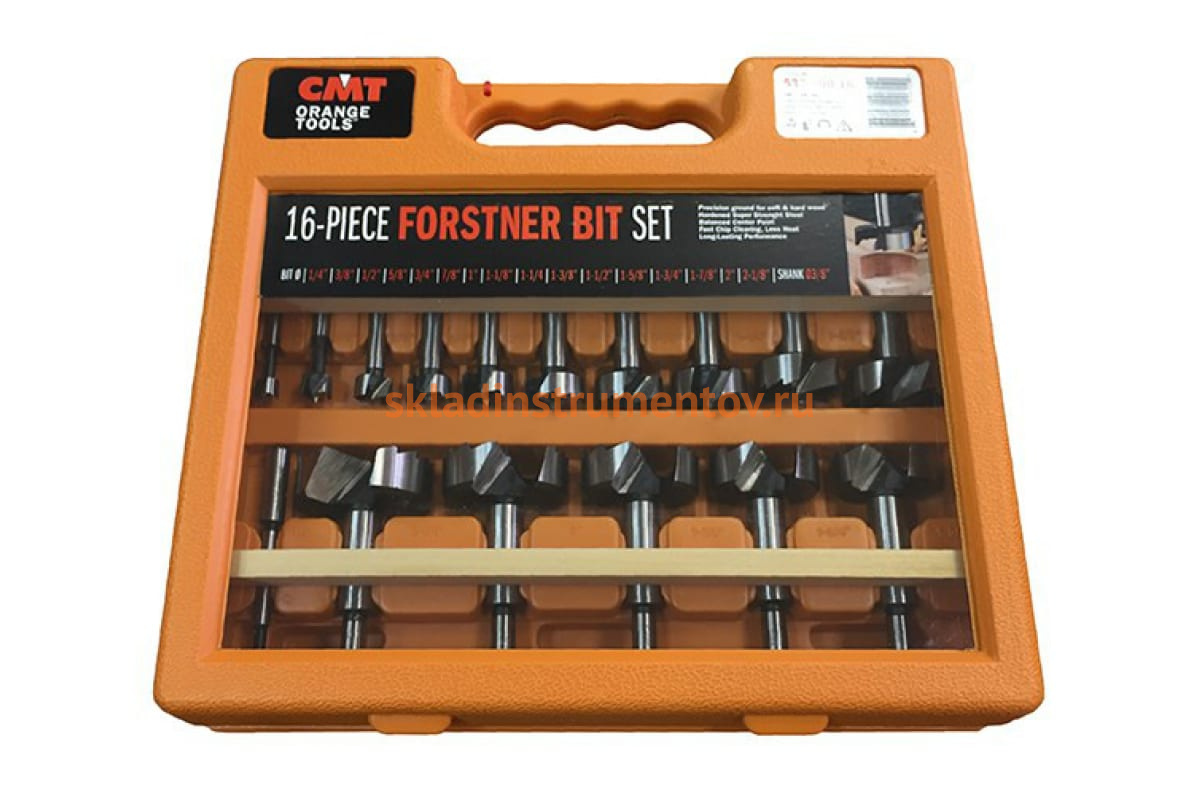 Комплект свёрл Форстнера CMT 537.000.16 предназначен для сверления сквозных и глухих отверстий с ровным плоским дном в мягкой древесине с помощью дрелей, шуруповертов, а также вертикально-сверлильных станков. Сверла изготовлены из инструментальной стали, имеют две режущие кромки и две боковые подрезные грани. Диаметр хвостовика - 3/8".