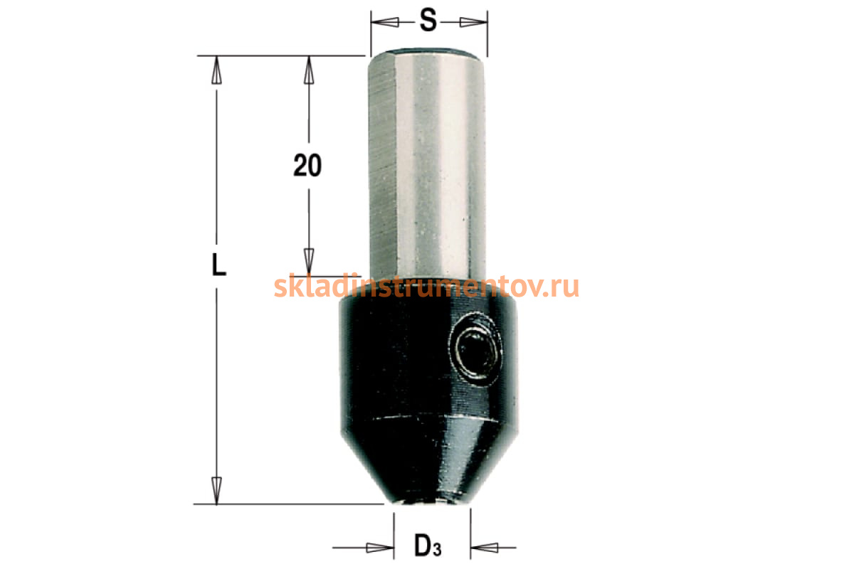Переходник CMT 364.040.00 предназначен для присадочных станков. Применяется для зажима спиральных монолитных сверл с диаметром хвостовика – 4 мм. Хвостовик – цилиндрический с лыской.