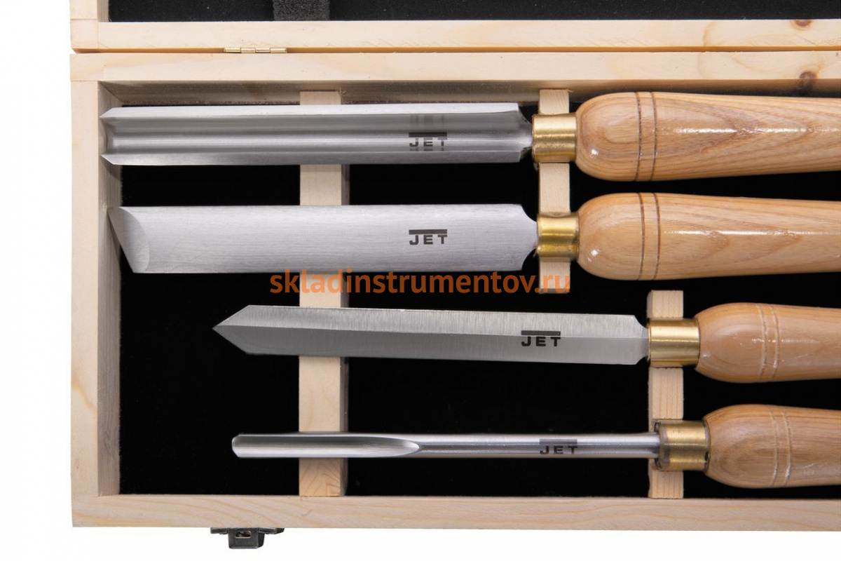 Набор токарных резцов HSS 4 шт JET 19500119 применяется для обработки древесины на токарном станке по дереву. Резцы изготовлены из качественной быстрорежущей стали HSS. Токарные резцы имеют длинную рукоятку из ясеня, набор поставляется в деревянной коробке.