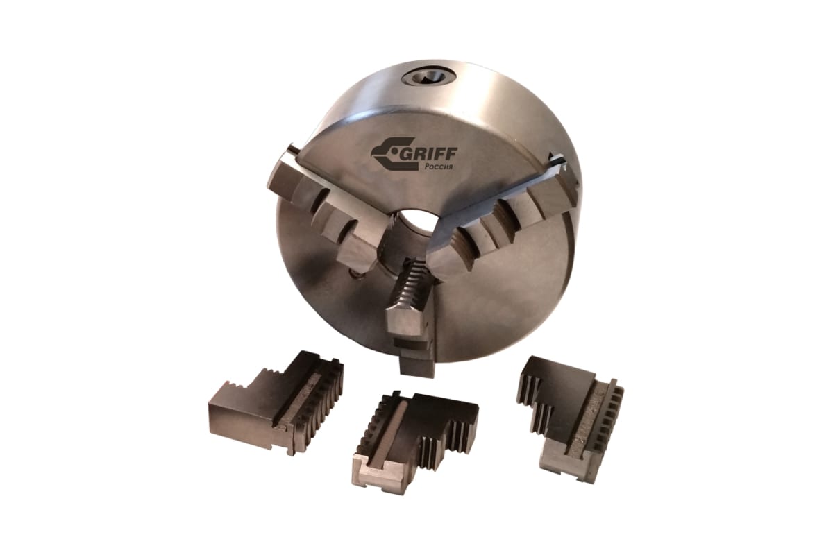 Патрон 3-х кулачковый (250 мм) GRIFF b208020 предназначен для токарных станков. Применяется для зажима заготовок. Корпус изготовлен из чугуна с шаровидным графитом. Класс точности П – повышенный по ГОСТ 1654-86. Патрон оснащен цельными кулачками. Имеет цилиндрический центрирующий поясок и крепление через промежуточный фланец по ГОСТ 3889-80.