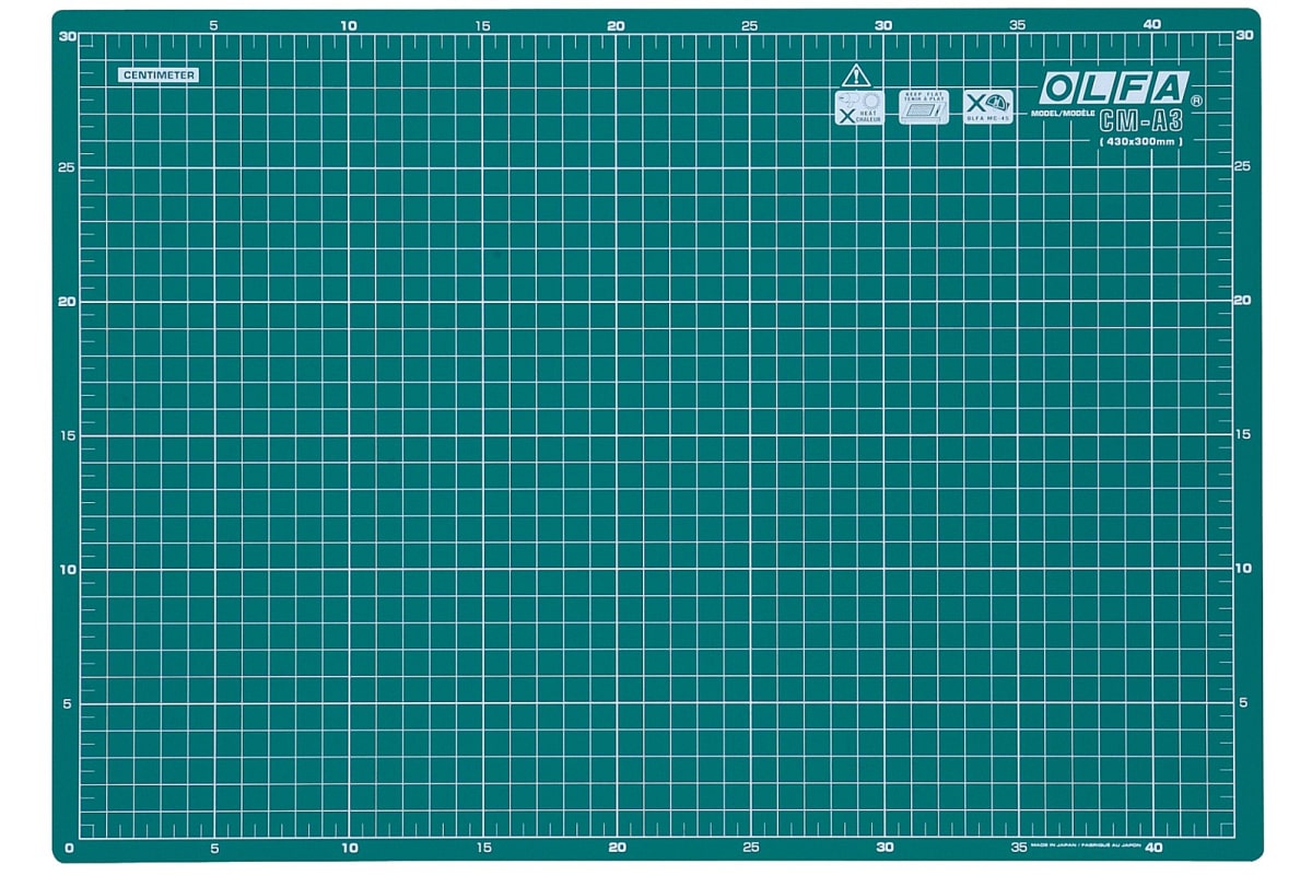 Универсальный двусторонний коврик OLFA CM-A3 — отличное решение для повышения эффективности реза. Приспособление имеет метрическую сетку с одной стороны и дюймовую с другой для удобства в работе. Предназначен для использования со стандартными, художественными, дисковыми и специальными ножами OLFA. Коврик необходимо хранить на ровной поверхности для предотвращения деформации.