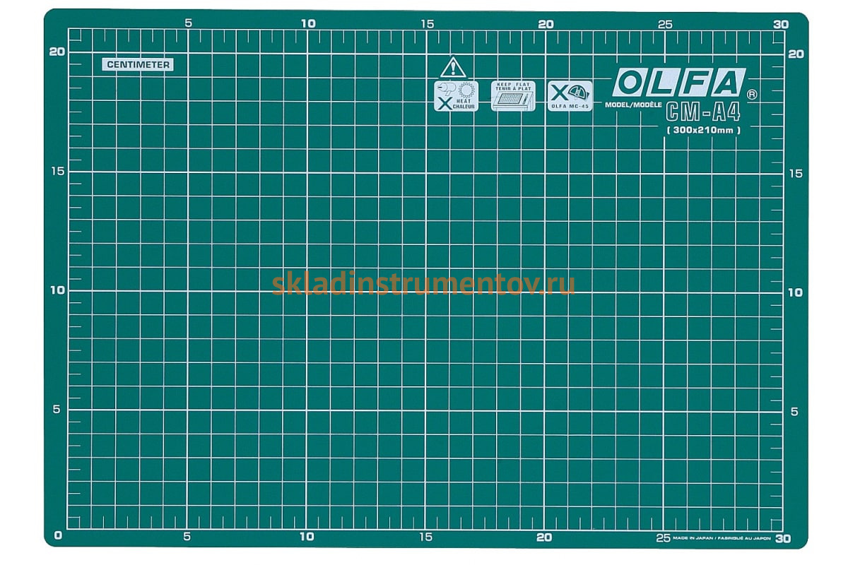 Универсальный двусторонний коврик OLFA CM-A4 — отличное решение для повышения эффективности реза. Приспособление имеет метрическую сетку с одной стороны и дюймовую с другой для удобства в работе. Предназначен для использования со стандартными, художественными, дисковыми и специальными ножами OLFA. Коврик необходимо хранить на ровной поверхности для предотвращения деформации.