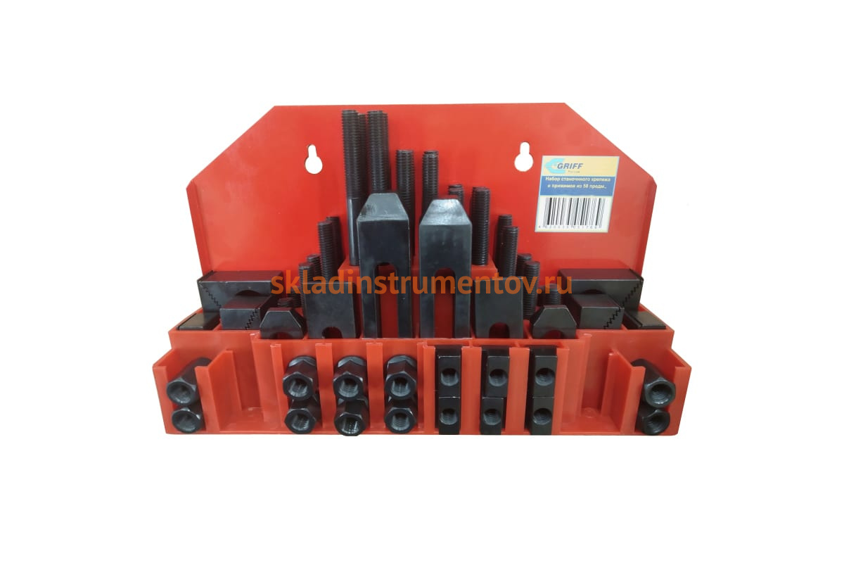 Набор GRIFF b275520 применяется для крепления заготовок сложной формы на столе фрезерного, сверлильного или другого станка, имеющего ширину Т-образного паза – 14 мм.